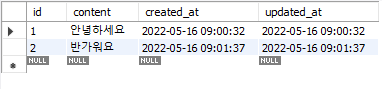 위와 같이 데이터를 추가하면 created_at, updated_at이 추가한 시간으로 저장된다.