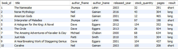 select *, if(pages >= 300, 'long', 'short' ) as result