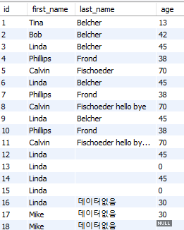 반대로 age가 null이 아닌 데이터만 출력하고 싶다면 is not null 을 사용하면 된다.