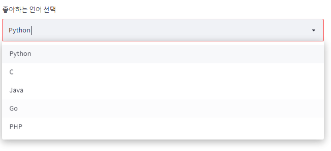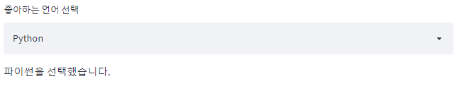 my_choice = st.selectbox('좋아하는 언어 선택', language)