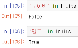 - in 을 사용하여 리스트에 해당 데이터가 들어있는지 확인할 수 있다.