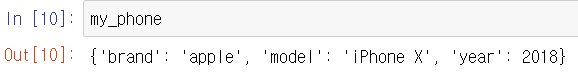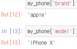 - 딕셔너리의 데이터 억세스는 인덱스가 아니라 '키'로 억세스한다.