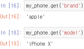 - 없는 키값에 억세스하면 KeyError가 발생한다.