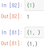 - 튜플의 값을 하나만 선언시 int형으로 생성된다.