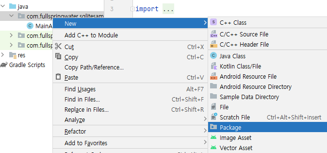 1. 새로운 프로젝트를 생성하고, MainActivity가 있는 패키지에 아래와 같은 패키지를 생성해줍니다.