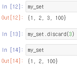 - discard() 를 이용해 데이터를 제거할 수 있다.