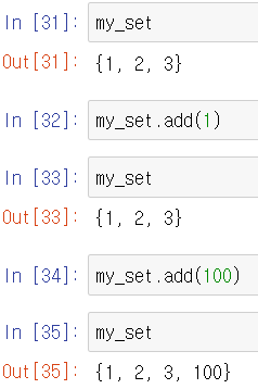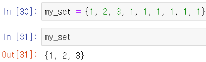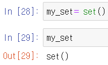 - 셋은 중괄호 { } 와 set() 로 정의합니다.