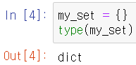 - 비어있는 { } 로 만들게 되면 딕셔너리로 생성이 되기 때문에