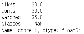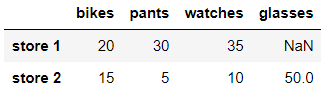 df = pd.DataFrame(data= items2, index = ['store 1', 'store 2'])