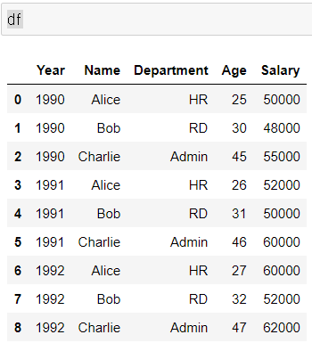 >>> df.groupby(['Year', 'Department'])['Salary'].sum()