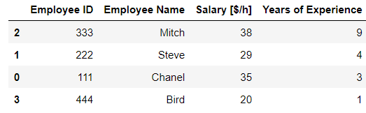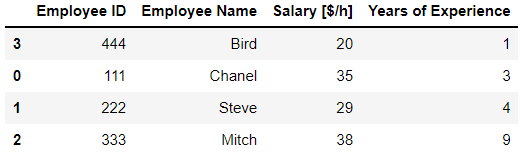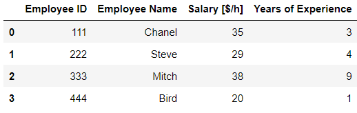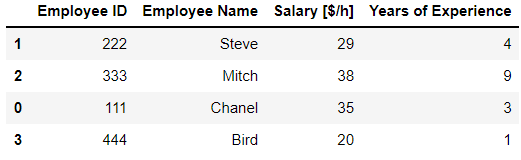df = pd.DataFrame({'Employee ID':[111, 222, 333, 444],
