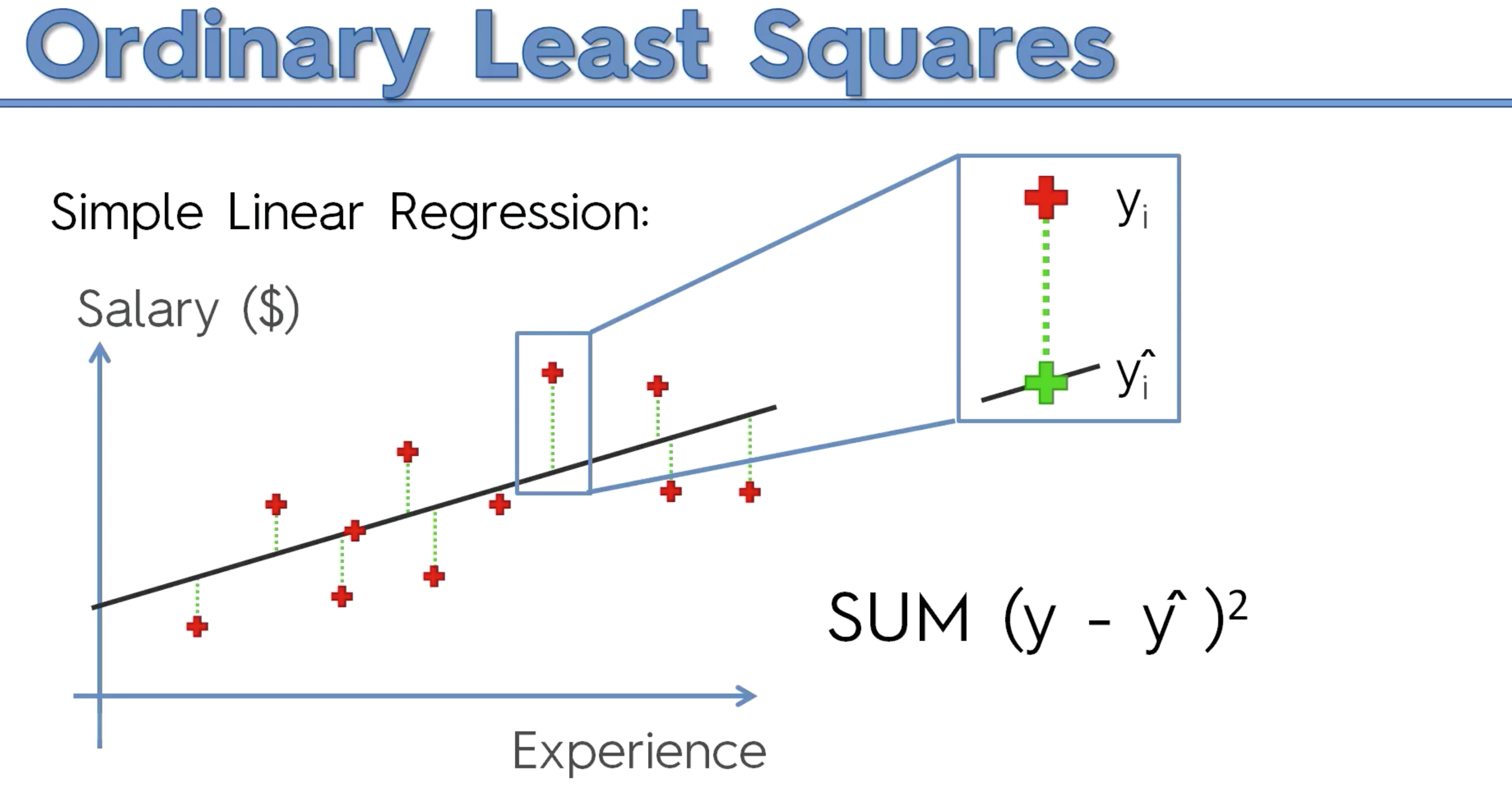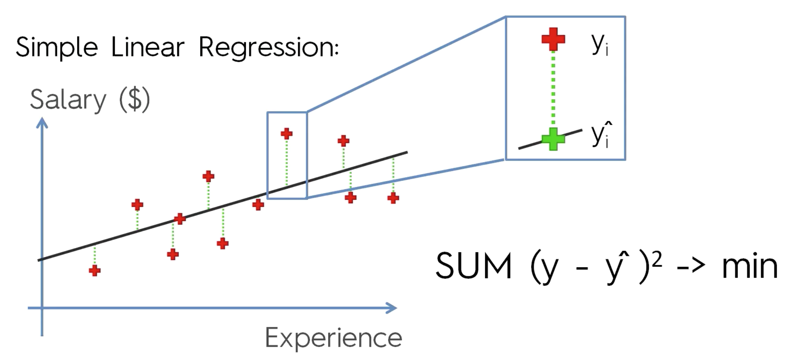 모든 관측점(Observation) 에서의 y값의 error(오차)가 존재하고, 이 오차들의 총 합을 줄여 나가면 된다.