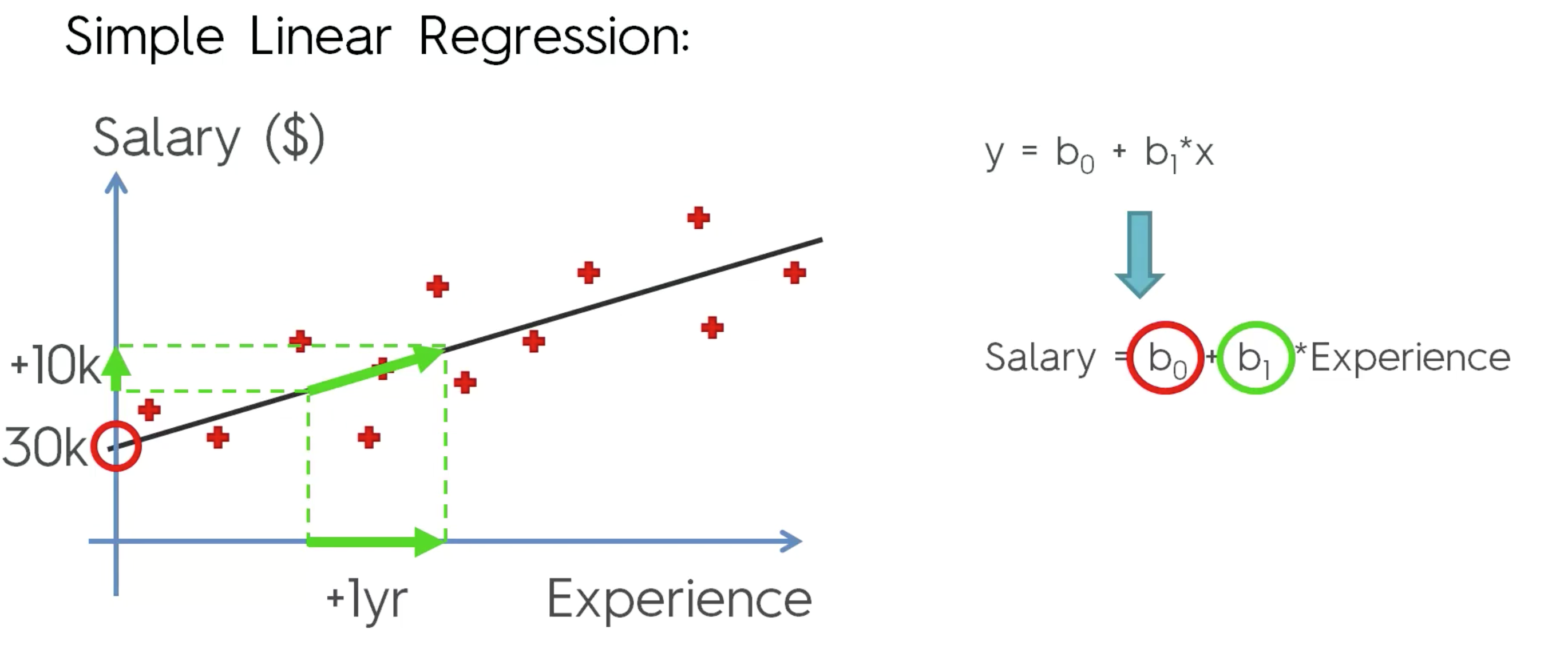 직선을 찾기 위해서는, 우리가 잘 아는 직선의 방정식을 이용하여, 직선의 기울기와 y절편을 구하면 되는것이다.