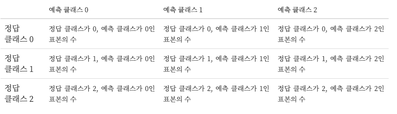 정답 클래스는 행(row)으로 예측한 클래스는 열(column)로 나타낸다.