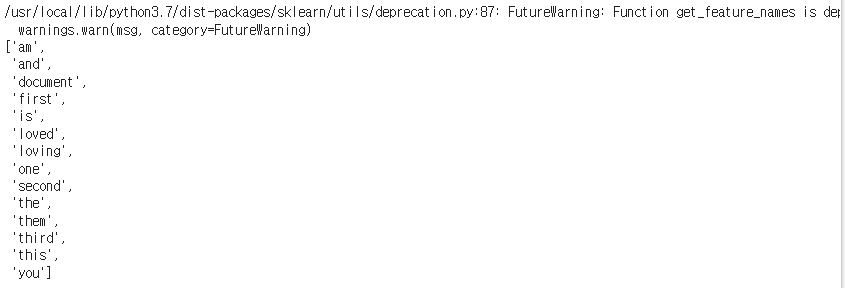 # 각 리스트요소마다 각 단어에 대해 몇개씩 있는지를 학습시킨다.