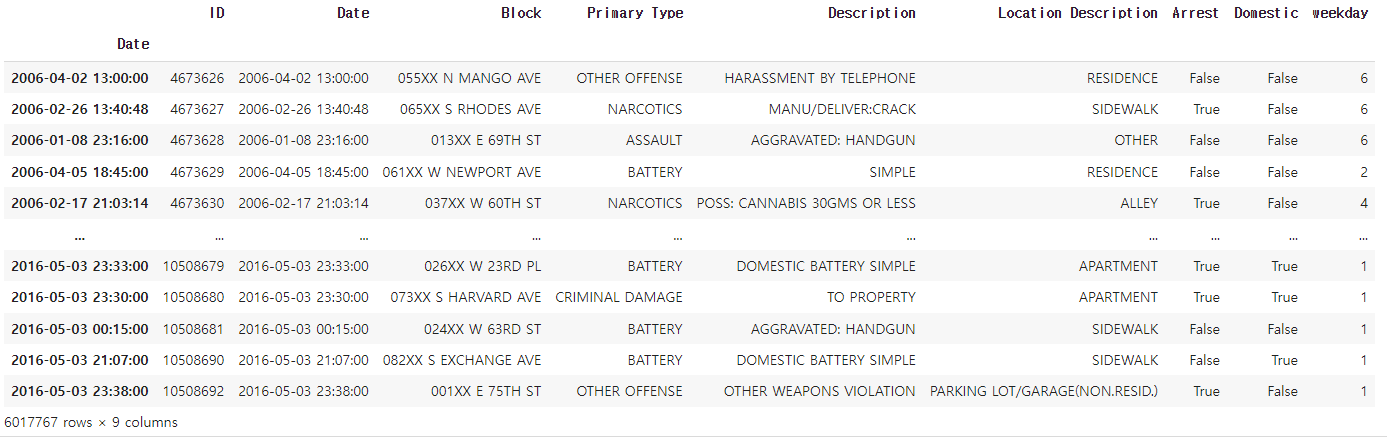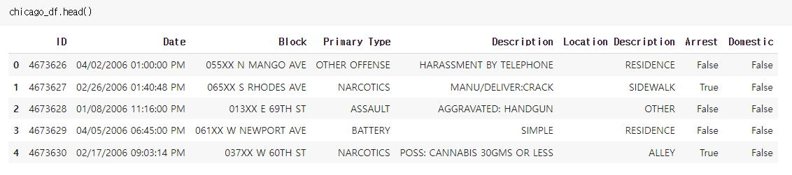 시카고 에서 일어난 범죄에 대한 데이터이다.